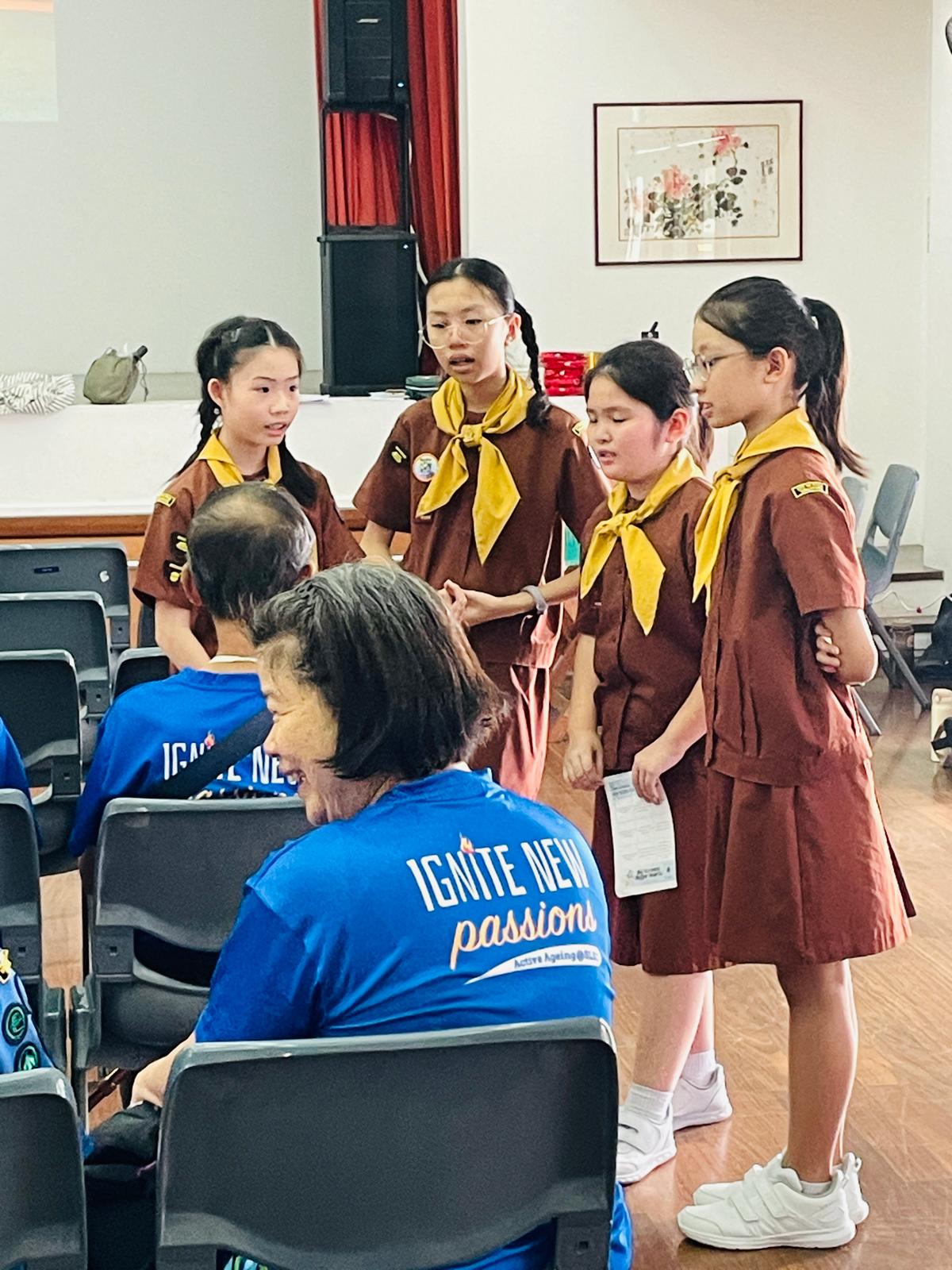 2025 saw 4 of our Brownies, Joyann Oh, Shermayne Woo, Wong Syuen Nynn and Calista Chia being involved in the Big Screens, Bigger Hearts intergenerational event with St. Luke's Eldercare (SLEC), uniting Brownies, Guides, Young Adults, and seniors to build meaningful connections while developing leadership, advocacy, and community impact skills. At the school level, we displayed our bandaging skills for our Total Defence Day Exhibition in 2026.